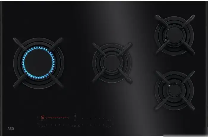 Варочная панель AEG HVB8453IB выполнена в современном дизайне с черной закаленной стеклянной поверхностью. Она оснащена четырьмя газовыми конфорками: двумя с разной мощностью и диаметром, что позволяет готовить разные блюда одновременно. Управление происходит через сенсорные слайдеры, расположенные спереди, что делает работу проще и удобнее. Панель имеет индикатор остаточного тепла и блокировку от детей для безопасности. Она поддерживает функцию паузы в приготовлении и управление вытяжкой, что повышает комфорт при готовке. Электроподжиг активируется автоматически, а газ-контроль предотвращает утечки газа. С ее помощью вы легко регулируете температуру и скорость нагрева, а стандартные размеры позволяют легко встроить ее в кухонную мебель.