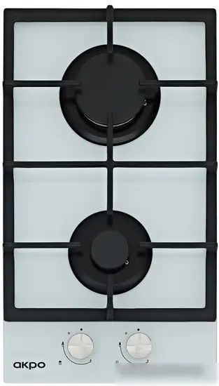 Варочная панель Akpo PGA 302 FGC WH — это независимая газовая модель с двумя конфорками, выполненная из закалённого стекла в белом цвете. Управление осуществляется механически спереди, что делает её простым в использовании. Панель оснащена автоматическим электроподжигом и газ-контролем для безопасной работы. Общая мощность составляет 4000 Вт, а диаметр посуды — от 120 до 240 мм. Передняя конфорка мощностью 3000 Вт подходит для быстрого приготовления, а задняя — 1000 Вт для лёгких задач. Чугунные решетки обеспечивают прочность и устойчивость посуды. Размеры панели — 30 см в ширину и 52 см в глубину, что легко впишется в стандартную кухонную нішу. Она не имеет дополнительных функций, таких как таймер или поддержание тепла, благодаря чему проста и надёжна в использовании. Эту модель удобно чистить и обслуживать благодаря гладкой стеклянной поверхности.