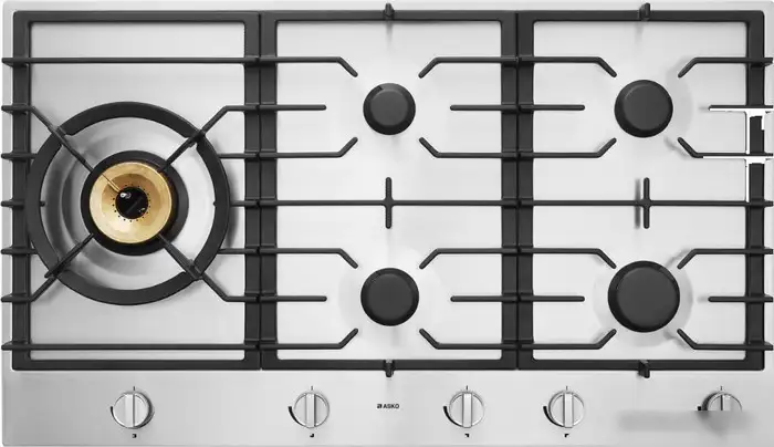 Варочная панель ASKO HG1986SB выполнена из нержавеющей стали и имеет пять газовых конфорок, включая одну конфорку WOK для быстрого приготовления. Она устанавливается отдельно от других устройств и управляется механическими рычагами спереди, что облегчает использование. Панель оснащена электроподжигом, который загорается автоматически при включении конфорки, и системой газ-контроля для безопасности. Размер панели — 90 см в ширину и 52,6 см в глубину, что подходит для установки в кухонную нишу шириной 86 см и глубиной 49 см. Конфорки выполнены из чугуна, их легко чистить и они устойчивы к нагреванию. Панель не имеет дополнительных функций, таких как таймер или индикатор остаточного тепла, но обеспечивает надежную работу и высокую мощность 12 200 Вт. Она хорошо подойдет для тех, кто ищет простое и долговечное решение для готовки.