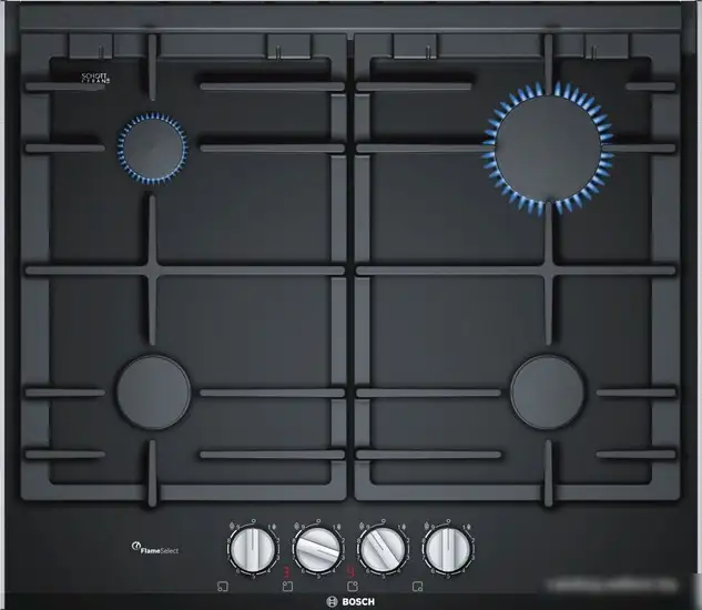 Варочная панель Bosch PRP6A6D70R — это надежное устройство с четырьмя газовыми конфорками, которое легко управлять с помощью механических ручек спереди. Ее рабочая поверхность выполнена из стеклокерамики черного цвета, что делает ее легко чистой и стильной. Панель имеет автоматический электроподжиг и газ-контроль для безопасности при использовании. Индикатор остаточного тепла показывает, какие конфорки еще нагреваются, чтобы избежать ожогов. Она подходит для встраивания в кухонный гарнитур шириной 56 см, а ее размеры — 60,6 х 52,7 см. Мощность достигает 7 700 Вт, а уровень регулировки — 9. Диаметр посуды может быть от 120 до 260 мм, что дает возможность готовить разными типами посуды. Благодаря простому управлению и безопасности, эта панель хорошо подойдет для повседневной кухни.