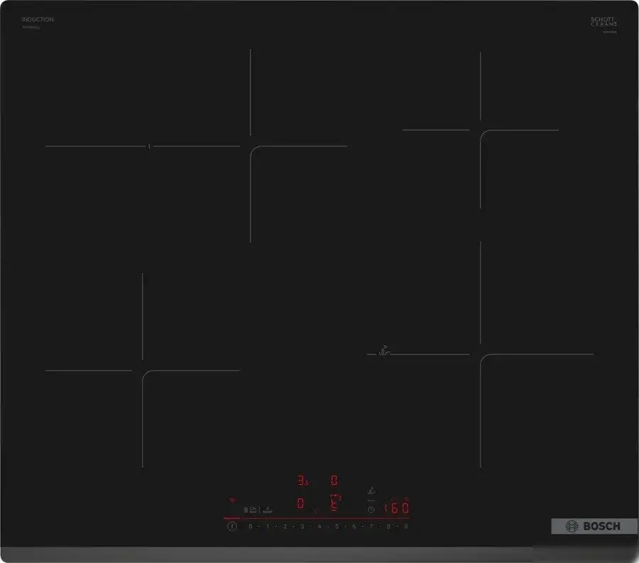 Варочная панель Bosch Serie 6 PIF63KHC1E — это современное устройство для готовки с четырьмя индукционными конфорками. Она выполнена из черной стеклокерамики с сенсорным управлением спереди, что делает ее удобной и стильной. Панель оснащена автоматическими программами, функцией паузы и таймером, что помогает контролировать процесс приготовления. Есть индикатор остаточного тепла и блокировка от детей, чтобы использовать ее было безопасно. Максимальная мощность составляет 7 400 Вт, а размеры позволяют легко установить ее в кухонную нишу. Благодаря высокой эффективности и простому управлению, эта панель отлично подойдет для любой кухни.