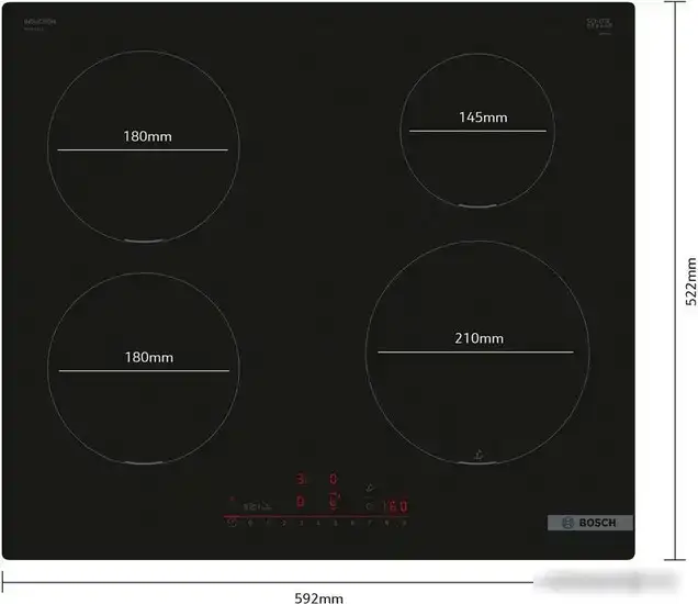| Подробная информация о конфорках | 2 x 1,8 кВт (макс. мощность 3,1 кВт) 1,4 кВт (макс. мощность 2,2 кВт) 2,2 кВт (макс. мощность 3,7 кВт) |