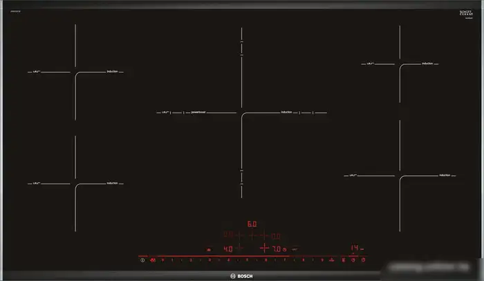 индукционная на 5 конфорок, cтеклокерамика, мощность: 11000 Вт, независимая установка, размеры (ШхГ): 91.6x52.7 см
