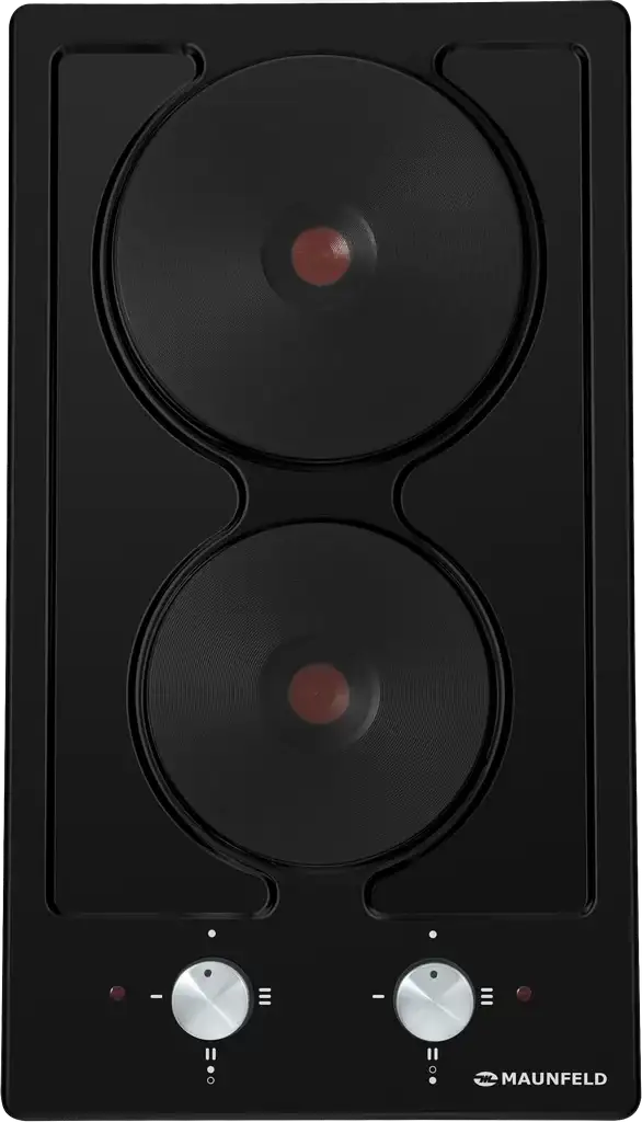 Электрическая варочная панель MAUNFELD EEHE.32.4B предназначена для удобной готовки. У нее есть две чугунные конфорки по 1500 Вт каждая, которые быстро нагреваются и равномерно распределяют тепло. Управление расположено спереди с помощью механических поворотных регуляторов, что делает использование простым и удобным. Панель выполнена из эмалированной стали черного цвета, выглядит очень хорошо и легко чистится. Размеры панели — 29 см в ширину и 51,5 см в глубину, что подходит для большинства кухонных шкафов. Эта модель не имеет автоматических программ или таймера, но хорошо подходит для тех, кто ценит простоту и надежность. Важной особенностью является возможность легко встроить ее в кухонный гарнитур.