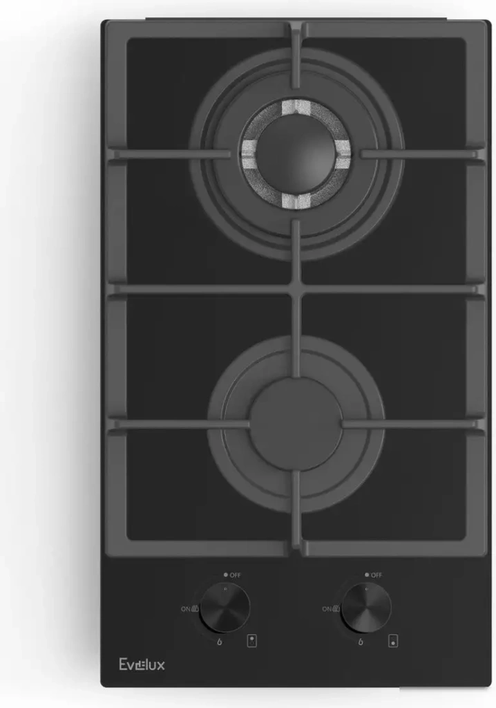 Варочная панель Evelux HEG 325 BG — это надежная газовая поверхность с двумя конфорками. Она выполнена из закаленного стекла, что легко очищается и выглядит современно. Управление осуществляется механически спереди, что удобно в использовании. Конфорки включают обычную маленькую и мощную WOK-конфорку мощностью 3.3 кВт для быстрого приготовления. Общая мощность панели составляет 4300 Вт, а газ-контроль обеспечивает безопасность работы. Электроподжиг включает автоматическую зажигалку, так что достаточно просто повернуть ручку. Решетки из чугуна повышают прочность и устойчивость посуды. Размеры панели позволяют встроить её в нишу шириной 26.5 см и глубиной 47.5 см. Устройство простое, прочное и подходит для тех, кто ценит практичность и безопасность.