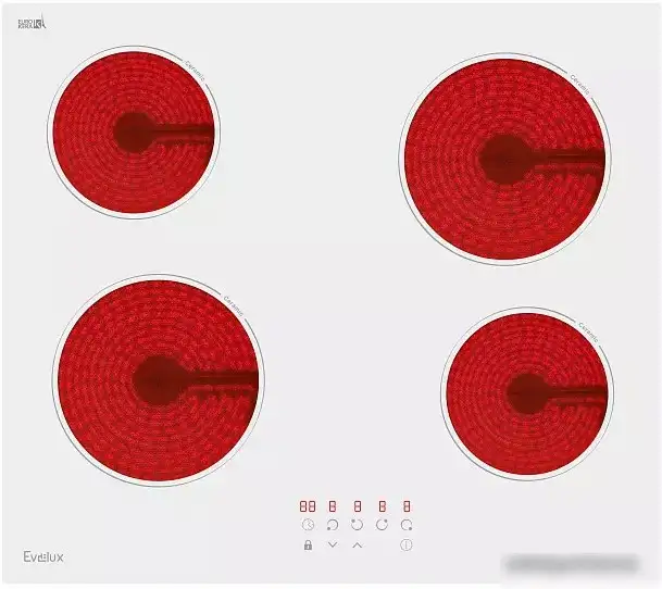 Варочная панель Evelux HEV 640 W выполнена из стильной и прочной стеклокерамики, что делает её не только красивой, но и удобной в уходе. У неё есть четыре конфорки с высокой мощностью, которая позволяет быстро готовить пищу. Сенсорное управление расположено спереди, есть кнопки для регулировки температуры и таймер, что делает использование простым и удобным. Панель оснащена индикатором остаточного тепла и блокировкой от детей, чтобы обеспечить безопасность. Можно управлять настройками дистанционно без Wi-Fi, а размер панели подходит для стандартных встроенных ниш.