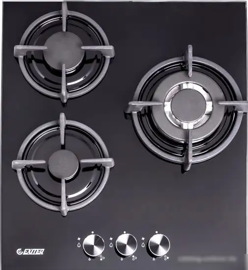 газовая на 3 конфорки, закаленное стекло, мощность: 6550 Вт, автоматический электроподжиг, газ-контроль, решетки: чугун, независимая установка, размеры (ШхГ): 45x51 см