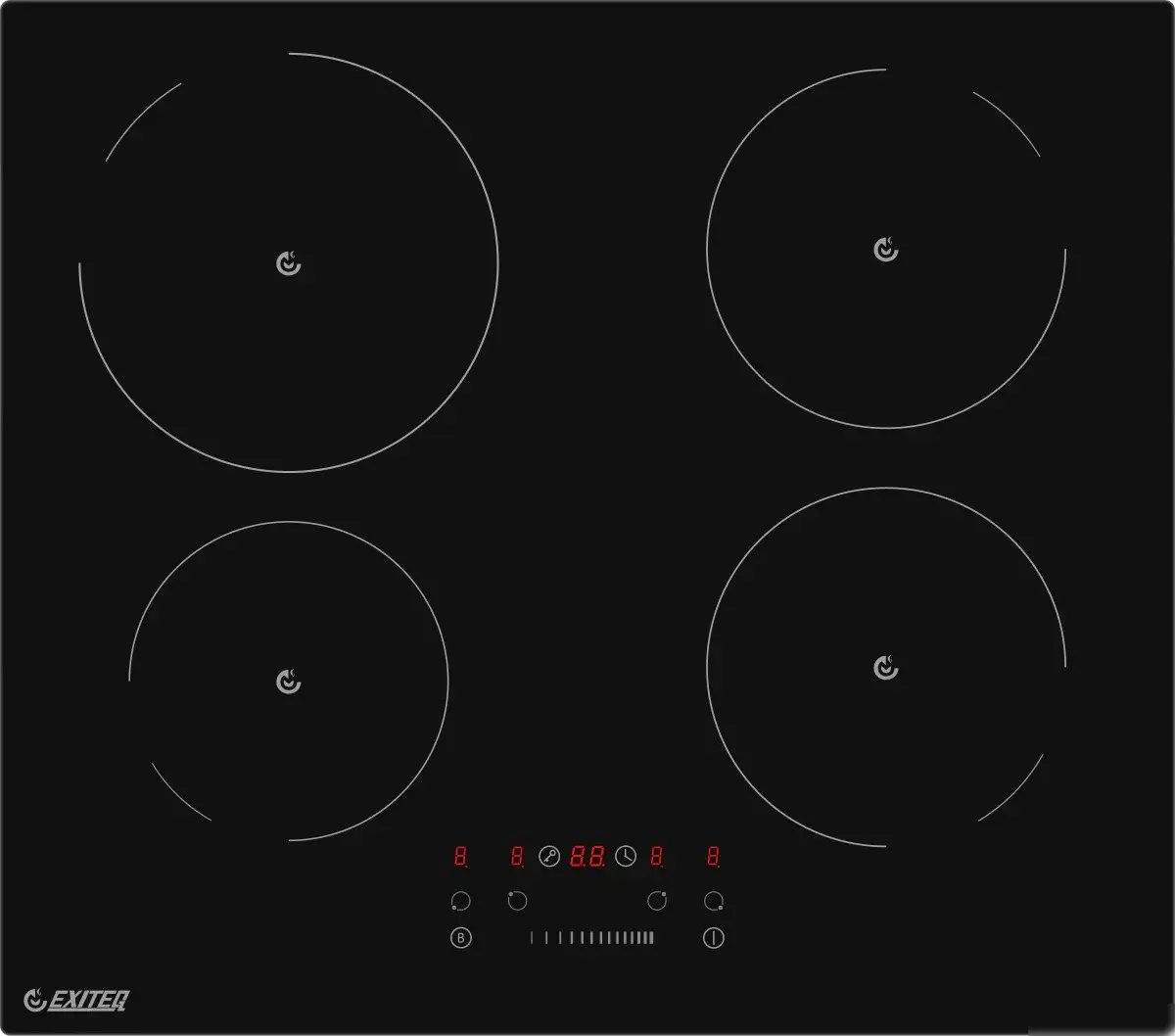 Варочная панель Exiteq EXH-502IB – это индукционная поверхность, сделанная в Турции. У неё есть четыре конфорки с разной мощностью, автоматически поддерживающие нужную температуру. Панель управляется простым сенсорным слайдером, расположенным спереди, что делает управление удобным и быстрым. Благодаря индикатору остаточного тепла и блокировке от детей, использование безопасно и удобно. Панель выполнена из прочной стеклокерамики черного цвета и имеет современный дизайн без рамки.