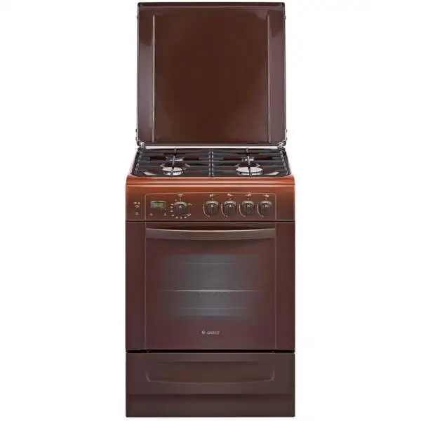 газовая панель + газовый духовой шкаф, газ-контроль конфорок, поверхность: эмалированная сталь, крышка из эмалированной стали, управление электронное, таймер электронный, размеры (ШхГхВ): 60x60x85 см, цвет коричневый