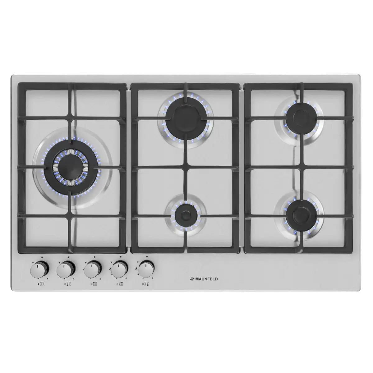 Варочная панель MAUNFELD EGHS.95.33CS/G – это удобная газовая поверхность с пятью конфорками, которая легко вписывается в кухонное пространство шириной 86 см. Рабочая поверхность выполнена из нержавеющей стали, что делает её прочной и легко чистящейся. Управление расположено спереди и работает механически, есть электроподжиг и газ-контроль для безопасности. Конфорки разной мощности — от 1000 Вт до 3800 Вт, что позволяет готовить различные блюда быстро и удобно. Устройство также оснащено чугунными решетками для устойчивой поддержки посуды. Благодаря простому дизайну и надежным функциям, эта варочная панель станет хорошим помощником на вашей кухне.