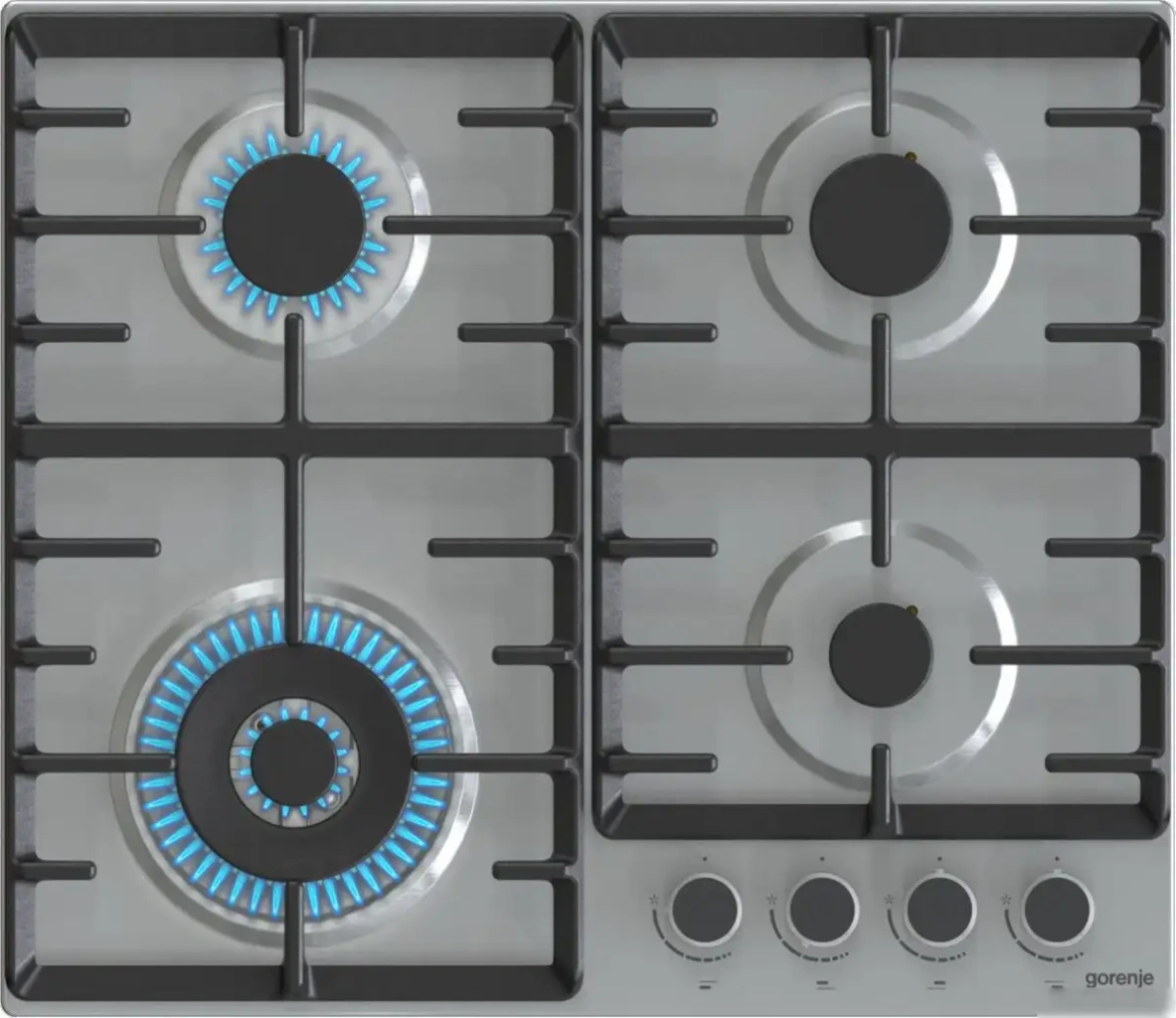 Варочная панель Gorenje GW642ABX — это независимая газовая плита с четырьмя конфорками, выполненная из нержавеющей стали. Она оснащена механическим управлением спереди и автоматическим электроподжигом для удобства использования. На панели есть две мощные двойные конфорки: передняя левая с мощностью до 3500 Вт и задняя слева и справа по 1800 Вт, что позволяет быстро готовить разные блюда. Передняя правая конфорка имеет мощность 1050 Вт и подходит для повседневной готовки. Каждая конфорка оснащена газ-контролем для повышения безопасности. Конфорки выполнены из прочных чугунных решеток, которые долго служат и устойчивы. Габариты панели — 60 см в ширину и 52 см в глубину, что легко вписывается в стандартную кухню. Управление расположено спереди и интуитивно понятно. Удобные функции делают готовку проще и безопаснее.