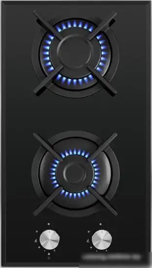 газовая на 2 конфорки, закаленное стекло, мощность: 4300 Вт, автоматический электроподжиг, газ-контроль, решетки: чугун, независимая установка, размеры (ШхГ): 29x51.5 см