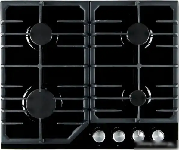 газовая на 4 конфорки, закаленное стекло, автоматический электроподжиг, газ-контроль, решетки: чугун, независимая установка, размеры (ШхГ): 61x51 см