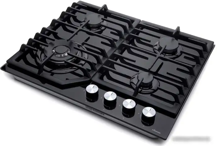 газовая на 4 конфорки, закаленное стекло, мощность: 8800 Вт, автоматический электроподжиг, газ-контроль, решетки: чугун, независимая установка