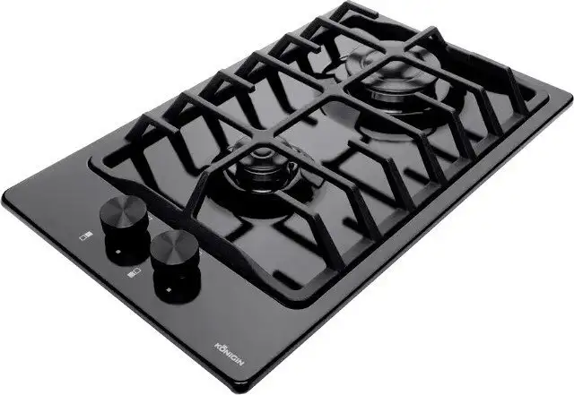 Варочная панель Konigin Flash 302 BK выполнена из эмалированной стали, что делает её прочной и легкой в уходе. Она оснащена двумя газовыми конфорками, которые позволяют быстро и удобно готовить различные блюда. Управление осуществляется механически с помощью поворотных ручек, расположенных спереди для удобства. Панель имеет автоматический электроподжиг, что обеспечивает быстрый запуск газа без использования зажигалок. Газ-контроль помогает избегать утечек газа и повышает безопасность. Общая мощность поверхности — 3500 Вт, что подходит для повседневной кухни. Ее размеры — ширина 32 см и глубина 52 см — позволяют легко встроить панель в стандартную кухонную мебель. Вес устройства — 5 кг, а размеры ниши для встраивания составляют 29х49 см. Эта модель отлично подойдет тем, кто ищет надежное и простое в использовании решение.