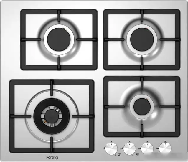 газовая на 4 конфорки, нержавеющая сталь, мощность: 8000 Вт, автоматический электроподжиг, газ-контроль, решетки: чугун, независимая установка, размеры (ШхГ): 59x51 см