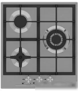 газовая на 3 конфорки, нержавеющая сталь, газ-контроль, решетки: чугун, независимая установка, размеры (ШхГ): 45x51 см