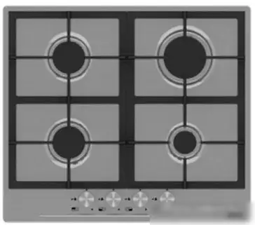 газовая на 4 конфорки, нержавеющая сталь, газ-контроль, решетки: чугун, независимая установка, размеры (ШхГ): 58.5x50 см