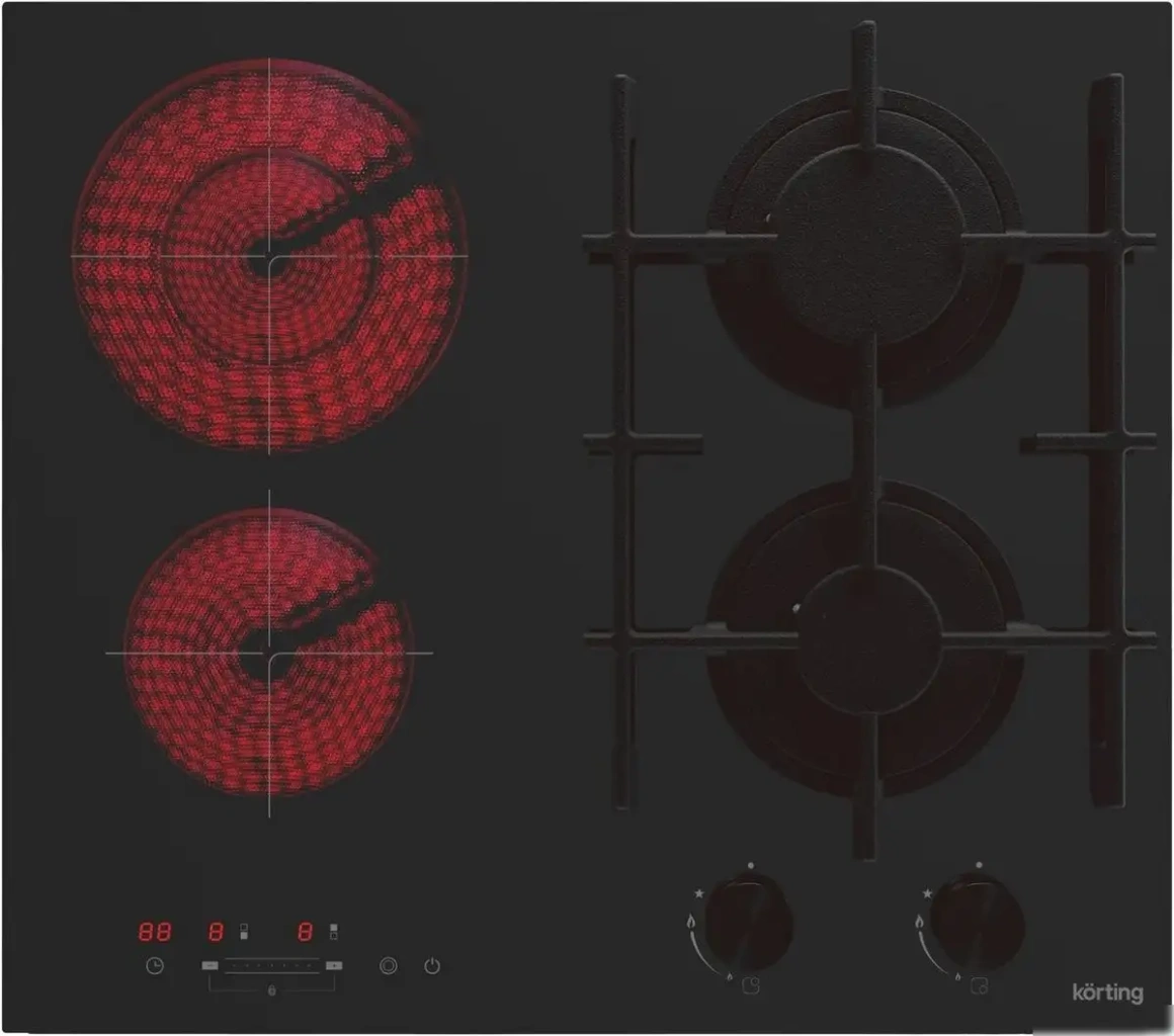 Варочная панель Korting HKG 6206 CN сочетает газовые и электрические конфорки для удобства приготовления. Она имеет две газовые конфорки, обеспечивающие мощность до 3 кВт, и две электрические конфорки HiLight с быстрым нагревом, что позволяет готовить быстро и эффективно. Рабочая поверхность выполнена из закаленного стекла, легко очищается и отлично выглядит. Управление встраивается на передней панели с помощью сенсорных слайдеров, что делает работу простой и удобной. Панель оснащена электронным таймером, индикатором остаточного тепла и блокировкой от детей для безопасности. Газ-контроль обеспечивает автоматическую остановку подачи газа при закипании, что дополнительно повышает безопасность. Электронное управление и индикатор позволяют точно контролировать процесс. Размеры панели подходят для установки в стандартную нишу, а металлические решётки и электроподжиг обеспечивают надёжную работу. Эта варочная панель идеально подойдет для тех, кто ищет комбинацию газовых и электрических функций.