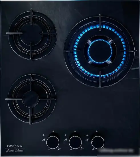 Варочная панель Krona Cortesia 45 BL — это независимая газовая поверхность с тремя конфорками, которая отлично подходит для домашней кухни. Она выполнена из закаленного стекла, что делает её прочной и легко очищаемой. Орган управления расположен спереди и работает механически, что обеспечивает удобство использования. Газовые конфорки включают одну мощную WOK-конфорку и две обычные, что позволяет готовить разнообразные блюда. Общая мощность панели составляет 6 550 Вт, а диаметр посуды — от 60 до 240 мм. Панель оснащена электроподжигом и газ-контролем для безопасности. Она имеет стандартные размеры: ширина 46 см и глубина 51 см, легко встраивается в кухонную мебель. Благодаря своему дизайну и функциональности, она помогает быстро и безопасно готовить домашние блюда.