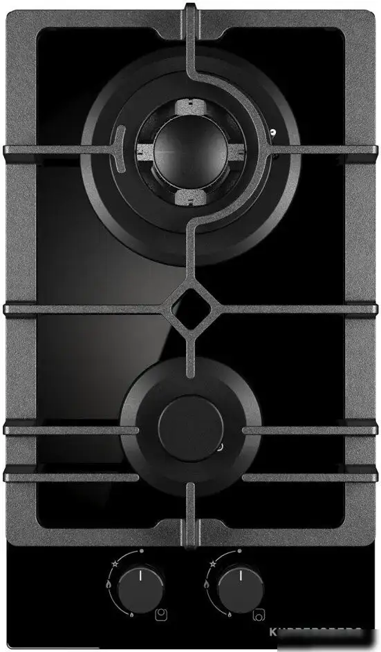 газовая на 2 конфорки, закаленное стекло, мощность: 4300 Вт, автоматический электроподжиг, газ-контроль, решетки: чугун, независимая установка, размеры (ШхГ): 30x52 см