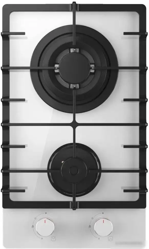 газовая на 2 конфорки, закаленное стекло, мощность: 4400 Вт, автоматический электроподжиг, газ-контроль, решетки: чугун, независимая установка, размеры (ШхГ): 30x51 см