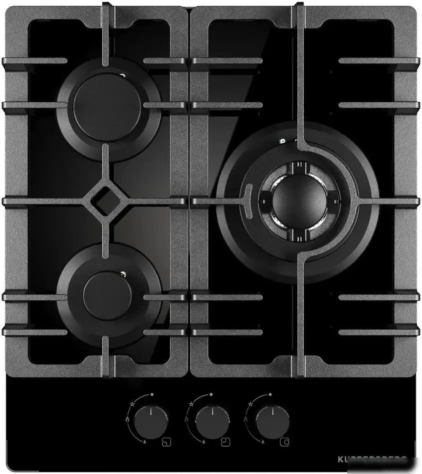 газовая на 3 конфорки, закаленное стекло, мощность: 6050 Вт, автоматический электроподжиг, газ-контроль, решетки: чугун, независимая установка, размеры (ШхГ): 45x51 см