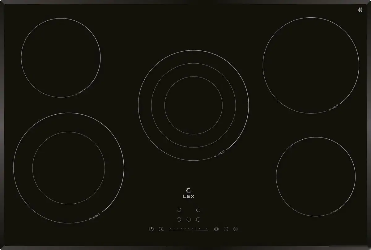Варочная панель LEX EVH 772A BL — это удобный и современный прибор для приготовления пищи. Она выполнена из прочной стеклокерамической поверхности черного цвета с закруглёнными краями. Панель имеет 5 конфорок с различной мощностью, включая быстрорежущие HiLight конфорки для быстрого нагрева. Управление сенсорное, расположено спереди, что делает использование простым и комфортным. Есть таймер, индикатор остаточного тепла и блокировка от детей, что повышает безопасность. Также есть функция паузы и возможность управлять панелью удаленно по Wi-Fi.