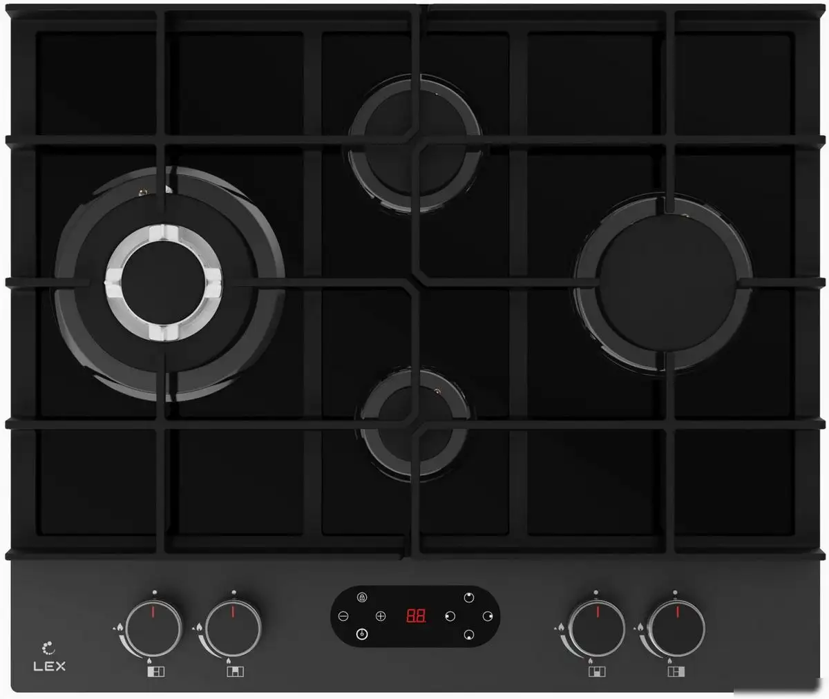 Варочная панель LEX GVG 644T M BBL — это удобное устройство с четырьмя газовыми конфорками, включая мощную конфорку WOK для приготовления больших блюд. Она выполнена из закалённого стекла, что делает её прочной и легко чистящейся. Управление осуществляется механически, расположено спереди, что удобно для использования. Эта панель не имеет автоматических программ и таймеров, но есть электронный таймер и система газ-контроля для безопасности. Мощность поверхности — 9 250 Вт, что помогает быстро готовить пищу. В комплект входят чугунные решётки, обеспечивающие устойчивость посуды. Размеры панели — 60 см в ширину и 51 см в глубину, она легко подходит для установки в кухонную нишу стандартных размеров.
