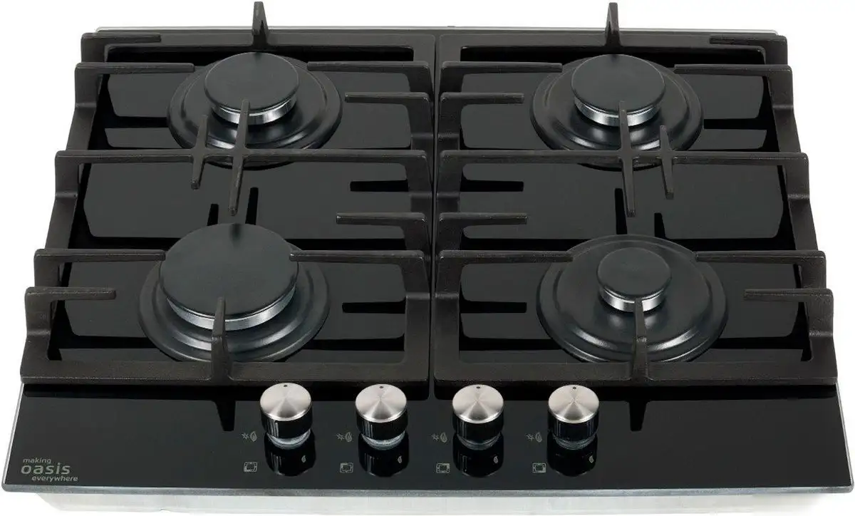 Варочная панель Making Oasis Everywhere P-GEB — это независимая газовая поверхность с четырьмя конфорками, выполненная из закалённого стекла в чёрном цвете. Она управляется механическими ручками, расположенными спереди, что делает управление простым и удобным. Конфорки имеют мощность 2,9, 1,7, 1,7 и 0,9 кВт, что позволяет быстро и равномерно готовить пищу. Панель оснащена электроподжигом, что обеспечивает быстрый запуск и безопасность. Благодаря прочным чугунным решеткам, посуду можно уверенно удерживать, не боясь повреждений. Общая мощность составляет 7200 Вт, что помогает эффективно использовать плиту. Универсальные размеры (58х51,5 см) подходят для большинства кухонных ниш. Устройство отличается простотой в эксплуатации и долговечностью.