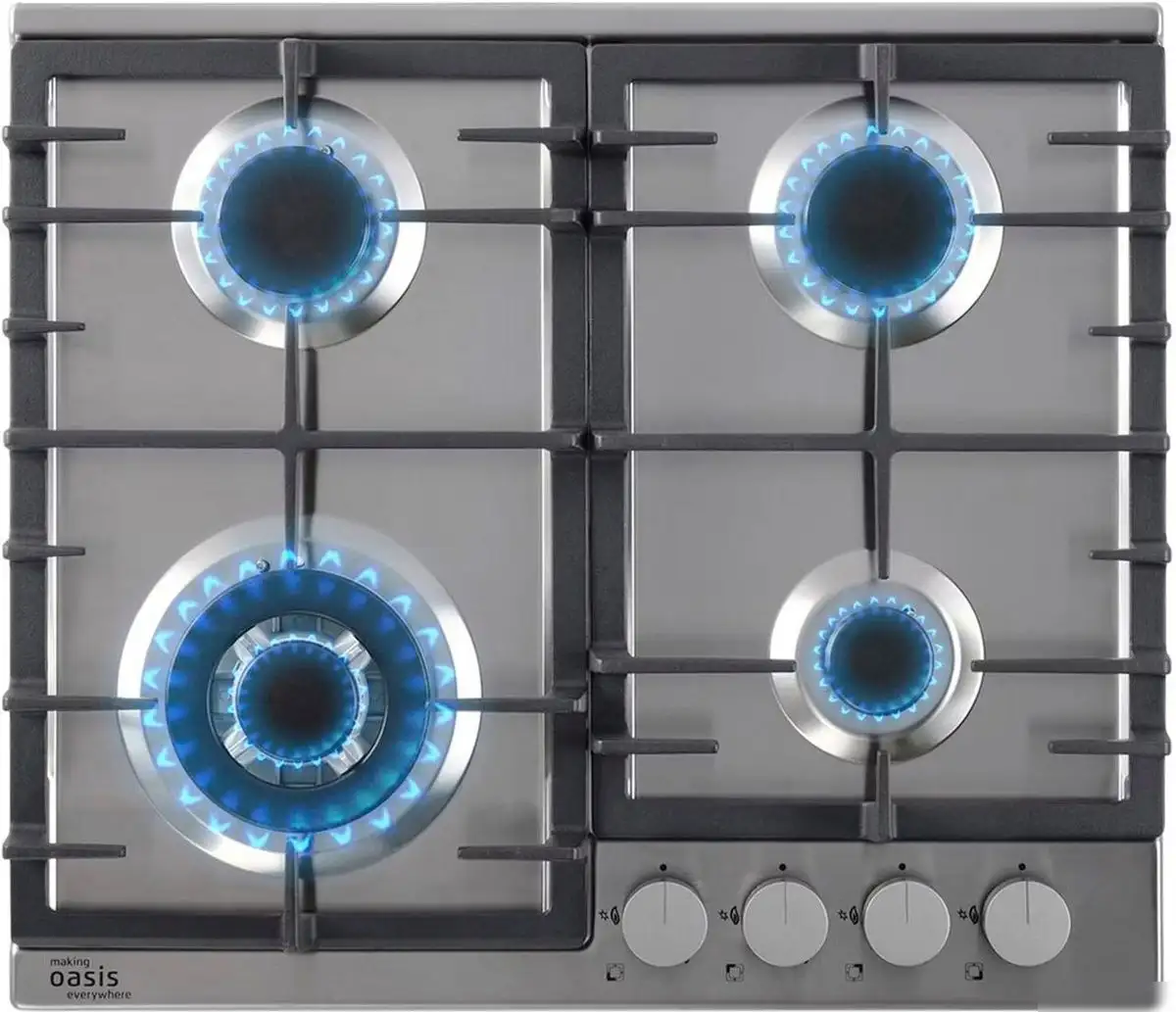 Making Oasis Everywhere P-MSR — это газовая варочная поверхность с четырьмя конфорками, выполненная из нержавеющей стали. Управление осуществляется механически спереди, что удобно и просто в использовании. Панель оборудована газ-контролем и электроподжигом, что повышает безопасность и комфорт при готовке. Конфорки имеют разную мощность: основные 3,5 и 2,9 кВт, более мощная конфорка для WOK — 3,5 кВт. Вся конструкция изготовлена из прочной нержавеющей стали, что облегчает уход и долговечность. Передовые особенности включают автоматическое зажигание и прочные чугунные решётки, которые обеспечивают стабильность посуды.
