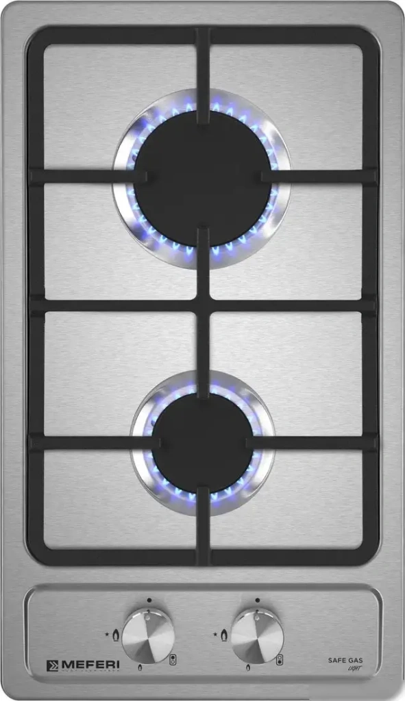 Варочная панель Meferi MGH302IX Light — это независимая газовая поверхность, выполненная из нержавеющей стали, которая легко сочетается с любой кухней. Она оснащена двумя газовыми конфорками, в том числе функцией автоматического электроподжига, что делает приготовление пищи более удобным и безопасным. Управление происходит с помощью механических поворотных регуляторов, расположенных спереди, что обеспечивает быстрый доступ и контроль. Газ-контроль защищает от утечки газа, делая использование более безопасным. Конфорки быстро нагреваются, что помогает экономить ваше время. Устройство не имеет дополнительных функций, таких как таймер или поддержание тепла, но идеально подходит для тех, кто ценит простоту и надежность. Вес панели составляет всего 3,8 кг, а ее размеры позволяют легко установить в стандартную нишу. Она не включает дополнительные элементы, такие как гриль или автоматические программы, что делает управление простым и понятным.