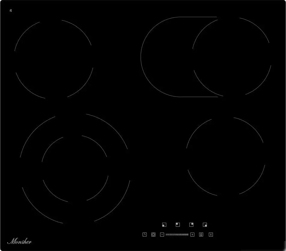 Варочная панель Monsher MHE 6013 выполнена из прочной стеклокерамики и оснащена четырьмя конфорками с быстрым нагревом HiLight. Сенсорное управление с слайдером находится спереди, что делает работу интуитивно понятной и удобной. Панель имеет встроенный таймер и индикатор остаточного тепла для безопасности. Управление блокируется для защиты детей, а электронная панель позволяет быстро установить настройки. Конфорки различной мощности и размеров обеспечивают комфорт при готовке, а двухуровневые конфорки позволяют точно регулировать нагрев. Мощность всей поверхности составляет 6600 Вт. Размеры панели подходят для стандартной ниши, что облегчает монтаж. Эта модель отлично сочетает стильный дизайн и простоту использования.