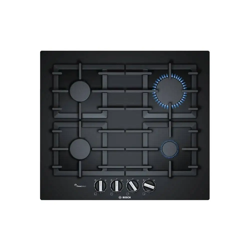 Варочная панель Bosch PPP6A6B90 — это независимая газовая плита, выполненная из прочного закаленного стекла черного цвета. Она оснащена четырьмя газовыми конфорками разной мощности, включая конфорку повышенной мощности для быстрого нагрева и экономичную для меньших кастрюль. Устройство удобно управляется механическими ручками, расположенными спереди, что облегчает контроль за процессом готовки. Плита имеет электроподжиг, обеспечивающий быстрый запуск огня при необходимости. Конфорки оборудованы газ-контролем, который автоматически перекрывает газ при случайном затухании пламени, что повышает безопасность. В комплекте идут прочные чугунные решётки, которые устойчиво держат посуду и легко очищаются. Благодаря своим размерам – 59 см шириной и 52 см глубиной – она легко впишется в большинство кухонных гарнитуров. Эта модель отлично подходит для тех, кто хочет надежную и удобную газовую варочную панель без дополнительных функций.