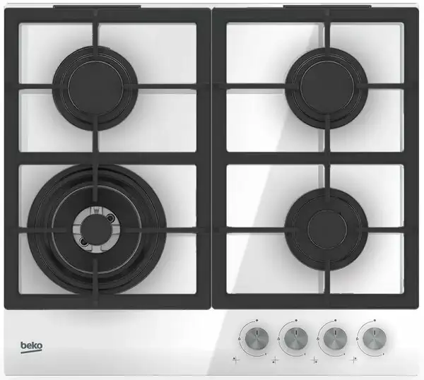 газовая на 4 конфорки, закаленное стекло, мощность: 8900 Вт, автоматический электроподжиг, газ-контроль, решетки: чугун, независимая установка, размеры (ШхГ): 59x52 см
