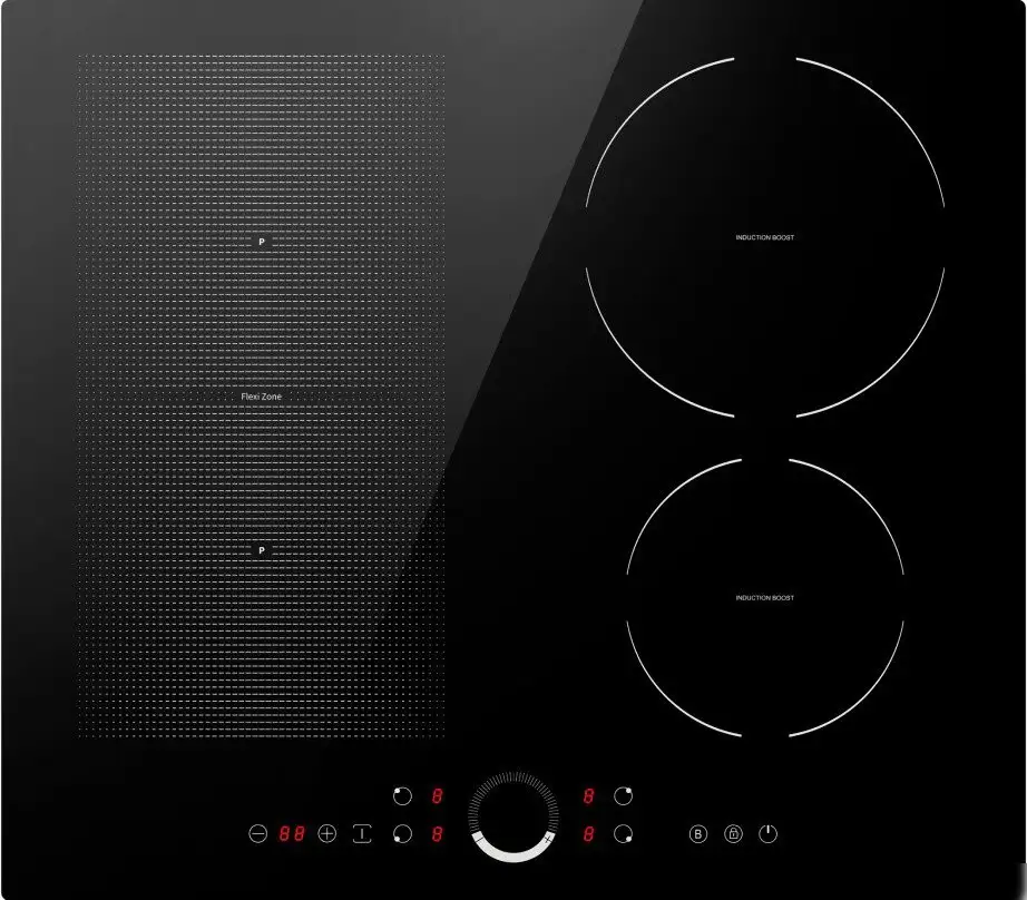 индукционная на 4 конфорки, cтеклокерамика, мощность: 7200 Вт, независимая установка, размеры (ШхГ): 60x52 см