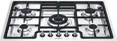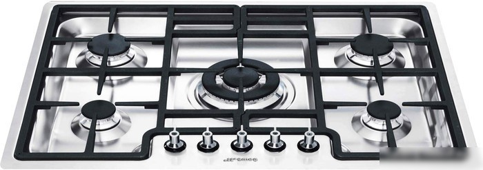 газовая на 5 конфорок, нержавеющая сталь, мощность: 9600 Вт, автоматический электроподжиг, газ-контроль, решетки: чугун, независимая установка, размеры (ШхГ): 72x51.2 см