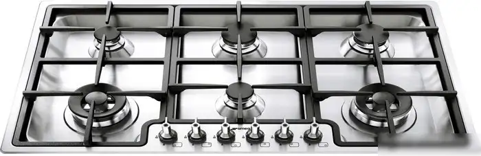 Варочная панель Smeg PGF96 — это независимая газовая поверхность с шестью конфорками, выполненная из нержавеющей стали. Она обеспечивает удобное управление механическими ручками и оснащена автоматическим электроподжигом, что облегчает зажигание газа. Конфорки имеют разную мощность, включая три конфорки быстрого нагрева для быстрого приготовления. Газ-контроль помогает повысить безопасность, отключая газ при случайном погасании пламени. Общая мощность составляет 13 700 Вт, что позволяет готовить одновременно на всех конфорках. Решетки из чугуна обеспечивают устойчивую поддержку посуды. Подойдет для кухонных ниш шириной около 85 см и глубиной 50 см. Эта модель легко устанавливается и станет надежным помощником на кухне.
