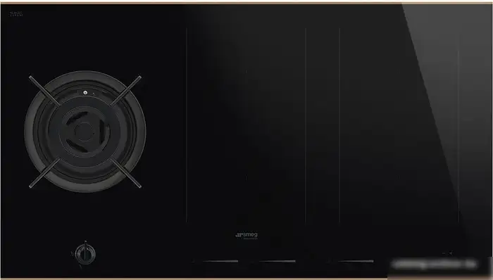 Варочная панель Smeg PM6954R сочетает индукционную и газовую технологию, что дает вам больше вариантов приготовления. На поверхности из стеклокерамики расположены 5 конфорок: 4 индукционные с разными мощностями и 1 газовая конфорка для традиционного варки, а также конфорки WOK и овалные зоны для приготовления в большом объёме. Управление осуществляется сенсорным слайдером спереди, и есть электронный таймер, индикатор остаточного тепла и блокировка от детей — это повышает безопасность в использовании. Панель легко моется благодаря гладкой поверхности, а индикатор тепла помогает избежать ожогов. Мощность конфорок составляет 13 400 Вт, что позволяет быстро разогревать и готовить пищу. Благодаря независимому монтажу и современному дизайну в черном цвете она прекрасно впишется в любой кухонный интерьер. Еще одна полезная функция — электроподжиг и газ-контроль, которые обеспечивают безопасность и удобство во время готовки.