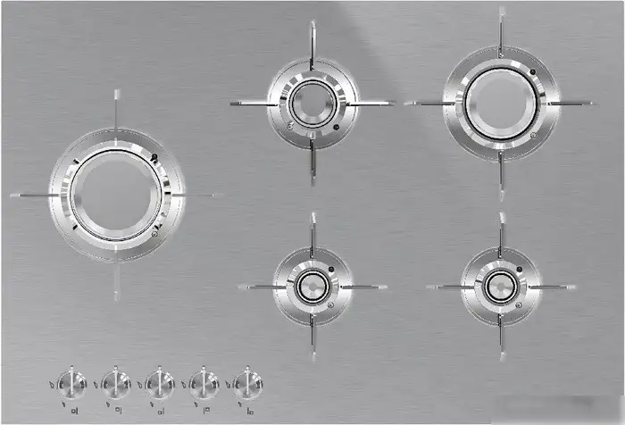 - Большое количество конфорок — подходит для разных размеров посуды и способов готовки.