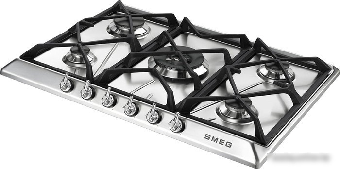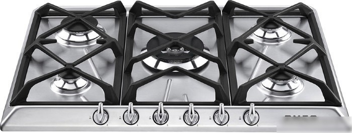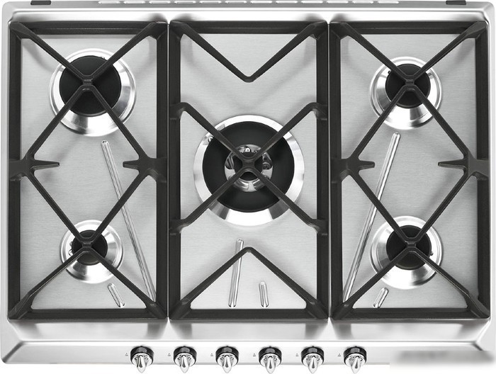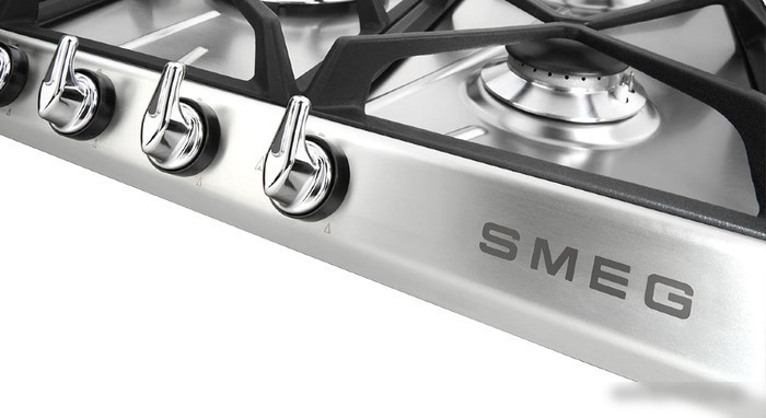 Варочная панель Smeg SR975XGH — это надежное устройство с пятью газовыми конфорками, среди которых есть конфорка WOK для быстрого приготовления. Рабочая поверхность выполнена из нержавеющей стали, что облегчает очистку и долговечность. Управление осуществляется механическими ручками, расположенными спереди для удобства использования. Газовая панель оснащена электроподжигом и газ-контролем, что повышает безопасность при готовке. Размеры панели — ширина 68,5 см и глубина 50 см, а для встроенного монтажа нужно место шириной примерно 56 см и глубиной около 48,2 см. Решетки из чугуна обеспечивают устойчивость посуде. Общая мощность составляет 11 900 Вт, что позволяет эффективно готовить разные блюда. Эта панель отлично подходит для домашней кухни благодаря простоте и надежности. Она не имеет функций автоотключения или таймера, но обеспечивает безопасное и удобное управление.