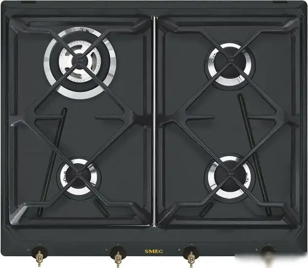 Варочная панель Smeg SRV864AOGH — это независимая газовая плита с четырьмя конфорками, выполненная из эмалированной стали. Её управляют механическими руками спереди, что удобно и быстро. Модель оснащена электроподжигом и газ-контролем для безопасности при эксплуатации. На панели расположены конфорки с разной мощностью, обеспечивающие быстрое нагревание и равномерное приготовление блюд. Благодаря автоматическому электроподжигу, зажигать конфорки легко и безопасно. Решетки выполнены из прочного чугуна, что гарантирует устойчивость посуды. Размеры позволяют легко встроить панель в кухонную мебель — ширина 59,5 см и глубина 50 см. Панель поддерживает ретро-дизайн и подходит для кухни с классическим стилем. Ее простое механическое управление обеспечивает надежную работу без лишних функций. Мощность всех конфорок составляет 7 650 Вт, что позволяет готовить сразу несколько блюд. Эта панель отлично сочетает стиль и функциональность, обеспечивая комфортное приготовление еды.