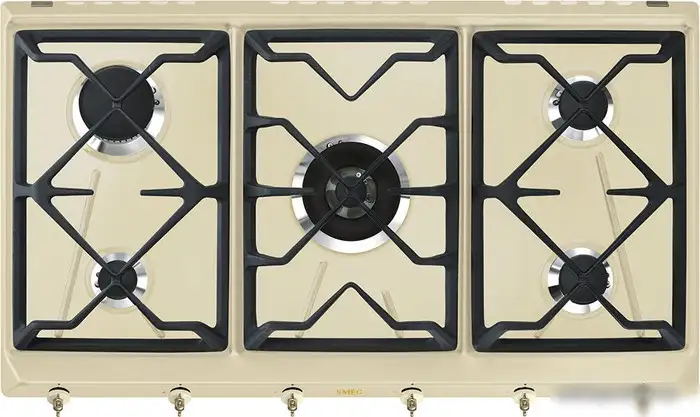 Варочная панель Smeg SRV896POGH — это независимая газовая поверхность с пятью конфорками, подходящая для любой кухни. Она выполнена из эмалированной стали, что облегчает уход и долговечность. Панель управляется механическими ручками, расположенными спереди, что удобно для быстрого регулировки. Встроенная система электроподжога и газ-контроль повышают безопасность при использовании. Конфорки включают мощную и энергоэффективную газовую конфорку WOK, которая отлично подходит для приготовления блюд на большом огне. Также есть конфорки быстрого нагрева для экономии времени. Общая мощность составляет 12 450 Вт, что обеспечивает быстрый нагрев и равномерное приготовление. Размеры панели позволяют легко встроить её в большинство кухонных ниш. Эта модель надежна и проста в использовании, подходит для тех, кто ценит функциональность и комфорт.
