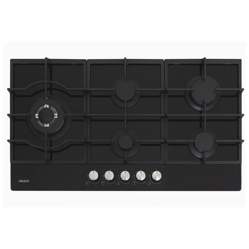 Варочная панель Akpo PGA 905 WGC-T BL — это удобное решение для домашней кухни. У неё пять газовых конфорок, в том числе одна конфорка WOK для быстрым приготовления больших блюд. Рабочая поверхность сделана из закаленного стекла, что легко очищается и выглядит современно. Панель управляется механически спереди, она проста в использовании. Благодаря автоматическому электроподжигу и газ-контролю, приготовление стало безопаснее и проще. Мощность конфорок достигает 10 800 Вт, что помогает быстро нагреть посуду. Размеры панели подходят для стандартной ниши, а её вес — около 18,5 кг, что делает монтаж удобным.