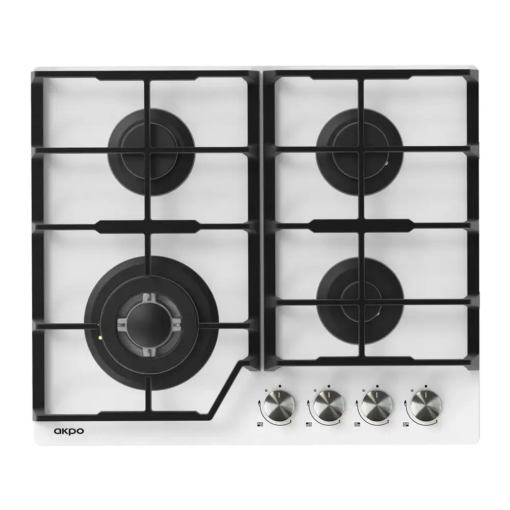 Варочная панель Akpo PGA 604 HGC-T BL изготовлена в Китае, она работает на газу и имеет четыре конфорки, включая одну турбо-конфорку мощностью 3300 Вт для быстрого нагрева. Рабочая поверхность выполнена из прочного закалённого стекла, которое легко очищается. Управление размещено спереди с помощью механических кнопок +/-, что делает использование простым и удобным. Эта модель оборудована электроподжигом, который загорается автоматически при включении конфорки, и системой газ-контроля для безопасности. Основные функции позволяют готовить разные блюда одновременно, а простое управление делает её удобной в использовании.