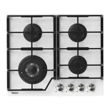 газовая на 4 конфорки, закаленное стекло, мощность: 7800 Вт, автоматический электроподжиг, газ-контроль, решетки: чугун, независимая установка, размеры (ШхГ): 60x51 см