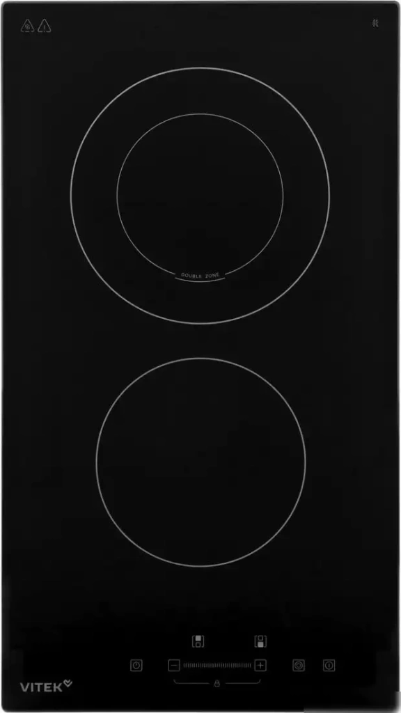 Варочная панель Vitek VHE3220 выполнена из прочной стеклокерамики черного цвета и имеет сенсорное управление спереди. Она оснащена двумя конфорками с быстрым нагревом HiLight, которые быстро и равномерно нагревают посуду. Панель легко управляется с помощью кнопок +/-, а наличие таймера и индикатора остаточного тепла помогает следить за процессом приготовления. Блокировка от детей обеспечивает безопасность, а автоматическая настройка конфорок делает готовку удобной. Благодаря компактным размерам (26,5 см шириной и 50 см глубиной), панель легко встроит в любую кухню. Она не содержит газовых и чугунных конфорок, что делает её более безопасной и современной. Легко очищается за счет гладкой поверхности и минималистичного дизайна. Управление осуществляется сенсором, что облегчает настройку режима и температуры.