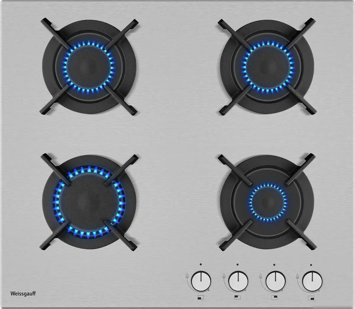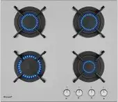газовая на 4 конфорки, нержавеющая сталь, мощность: 7300 Вт, автоматический электроподжиг, газ-контроль, решетки: чугун, независимая установка, размеры (ШхГ): 60x52 см