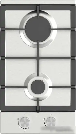газовая на 2 конфорки, нержавеющая сталь, мощность: 3400 Вт, автоматический электроподжиг, газ-контроль, решетки: чугун, независимая установка, размеры (ШхГ): 29x51 см