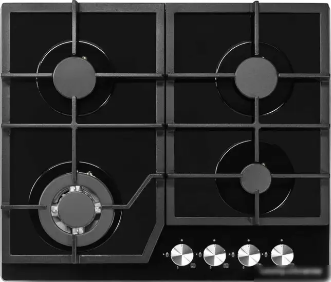 газовая на 4 конфорки, закаленное стекло, мощность: 8000 Вт, автоматический электроподжиг, газ-контроль, решетки: чугун, независимая установка, размеры (ШхГ): 58x50 см